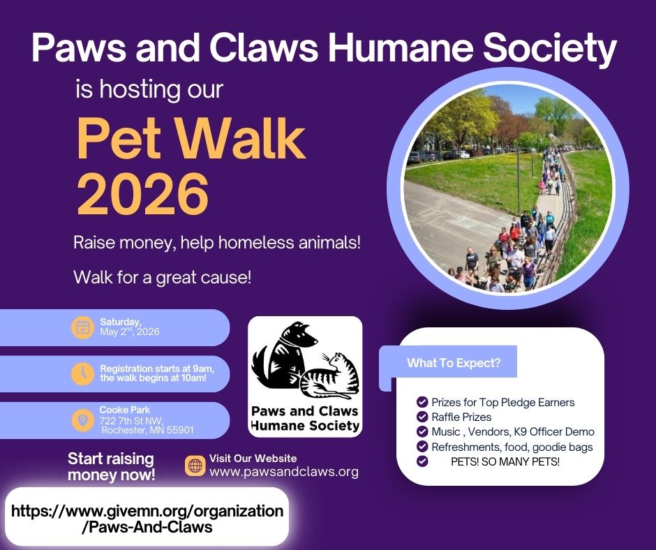 Paws and Claws hosts fundraising events each year. These events are vital to our ability to provide homes for over 1500 cats and dogs each year. As time comes near, we feature these events on our website and on our Facebook page.